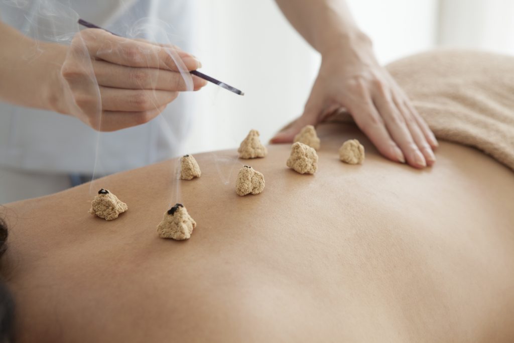 Moxibustion: this method uses herbs that are lightly toasted on top of each point, which warms them in order to treat what is causing the issue.